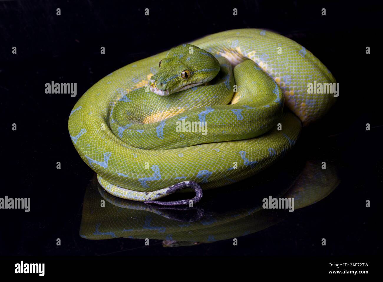 Green Tree Python Morelia Viridis Sorong Locality Isolated On Black Background Stock Photo Alamy